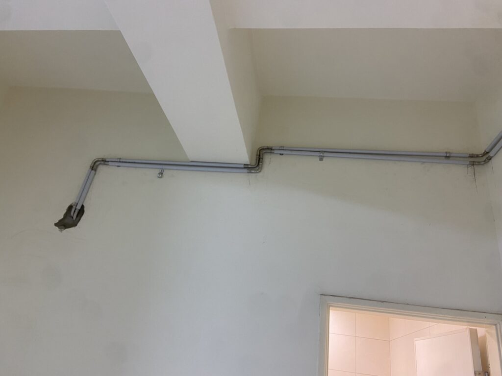 ▼接著是洗手台下連接的水管及隱藏在天花板的熱水管。